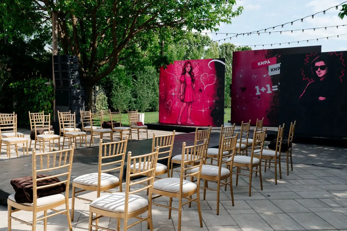 Pe timp frumos funcţionează o terasă spaţioasă, unde puteţi primi oaspeţi, cu scaune de răchiţă, flori exotice, mobilier acoperit cu stofă de un alb imaculat, totul este foarte simplu, uşor şi elegant ca întotdeauna.